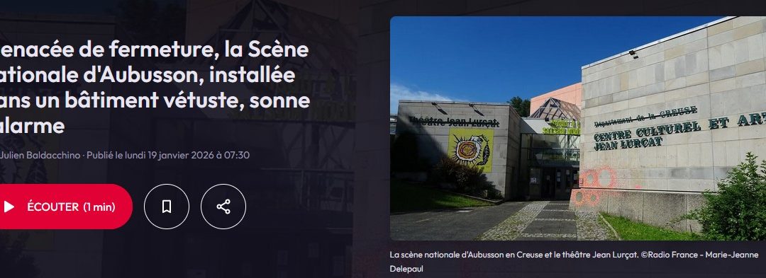 Le Théâtre d’Aurillac soutient son partenaire culturel, le Théâtre Jean Lurçat – Scène nationale d’Aubusson, qui est en danger.